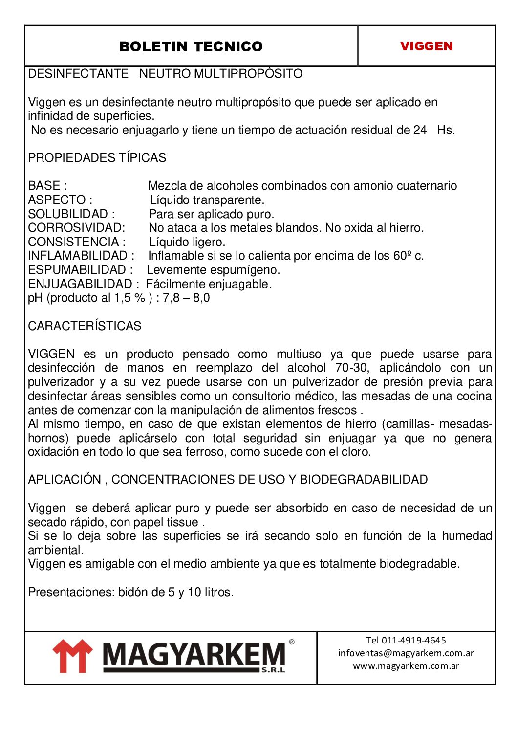 VIGGEN es un producto pensado como multiuso ya que puede usarse para desinfección de manos en reemplazo del alcohol 70-30, aplicándolo con un pulverizador y a su vez puede usarse con un pulverizador de presión previa para desinfectar áreas sensibles como un consultorio médico, las mesadas de una cocina antes de comenzar con la manipulación de alimentos frescos .